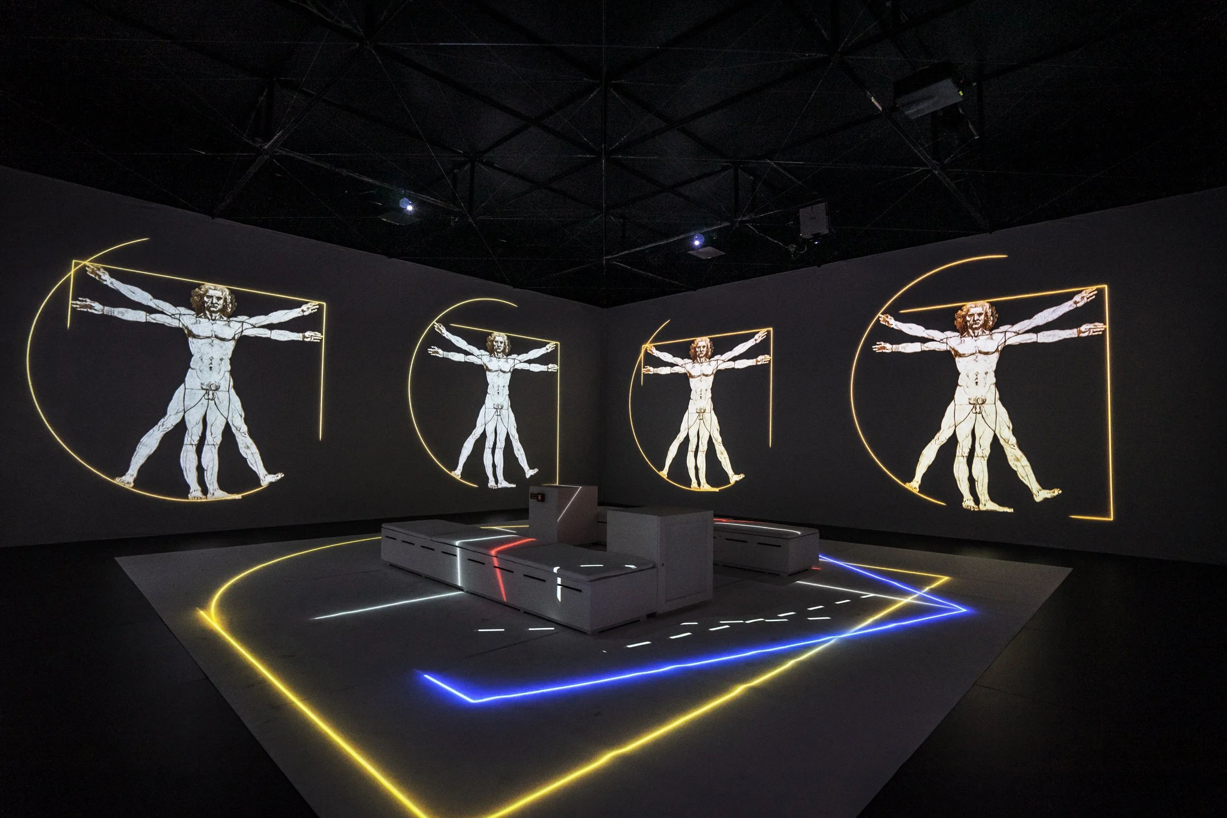 Com conceito e produção executiva da SOTA – State of the Art, a mostra apresentou, em ambiente imersivo, alguns dos trabalhos mais reconhecidos mundialmente, como o desenho Homem Vitruviano, estudos de máquinas de guerra como A Catapulta, e as emblemáticas pinturas Mona Lisa e A Dama com Arminho, entre muitas outras obras icónicas.